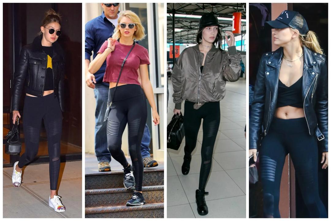 吉吉·哈迪德、贝拉·哈迪德、海莉·鲍德温和泰勒·斯威夫特纷纷穿上 Alo Yoga 的黑色摩托紧身裤上街
