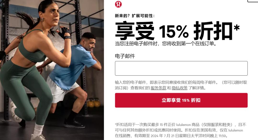 于是,越来越多的平替品牌用着Lululemon的供应链,画出了Lululemon日渐走低的增速曲线。而将兜售价值观视为核心业务的管理层,环顾四周尚未找到趁手武器,只能通过在线折扣、满减、代金券等形式包装,给自己的高贵留下一丝体面。