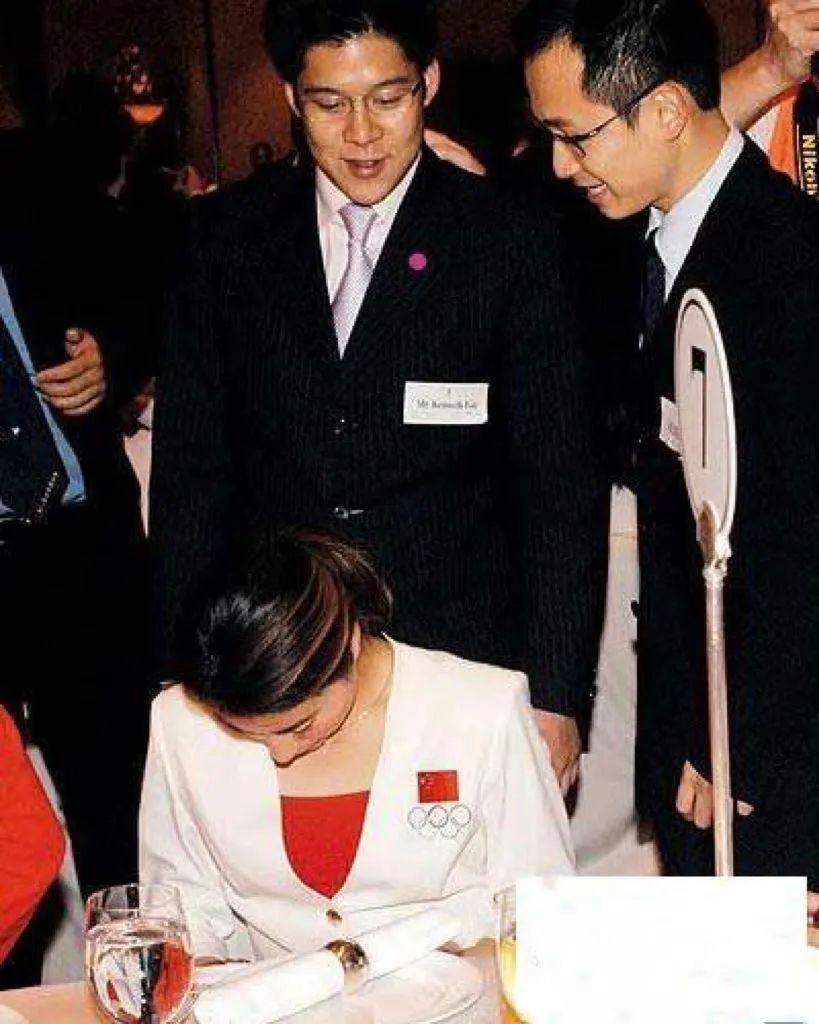 许多人都来找刚刚斩获3枚金牌的郭晶晶合影,霍启刚找她拍了两次。