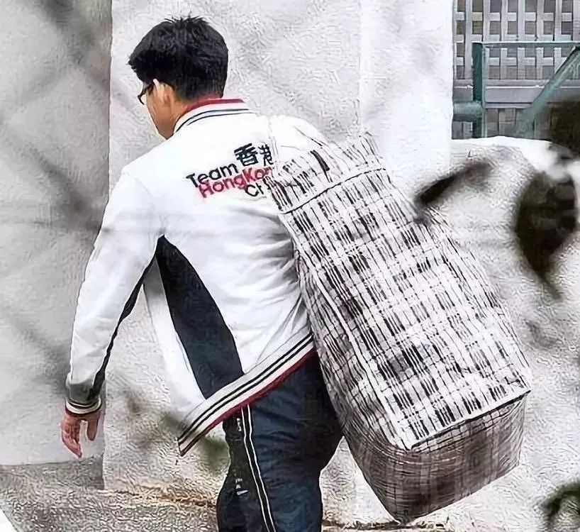 搬家的时候媒体拍到了霍启刚亲自扛着编织袋的照片。
