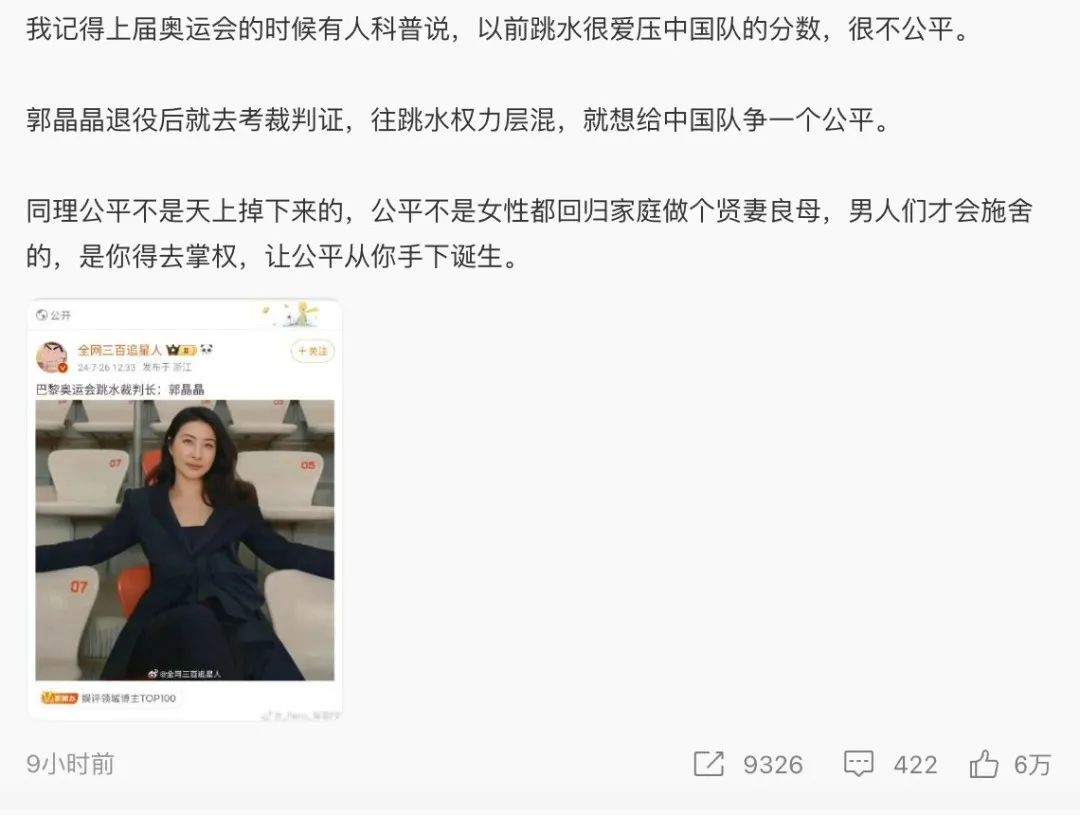 成为「裁判长」后,互联网上关于郭晶晶的叙事开始从事业、爱情和金钱中脱离出来。