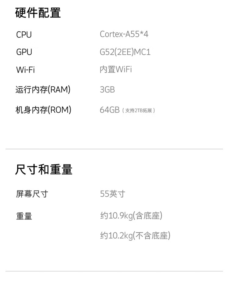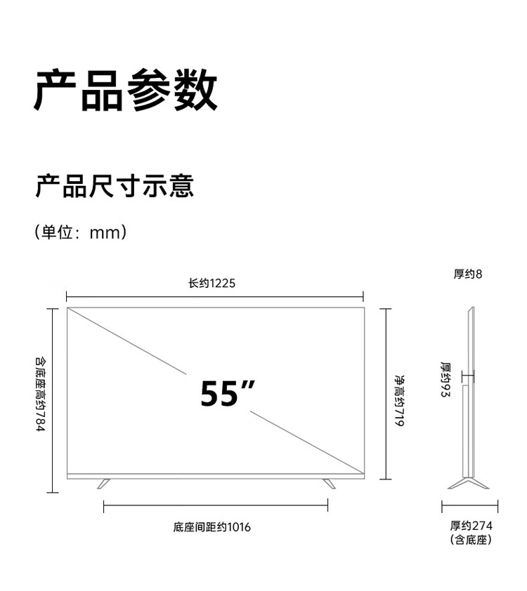 该电视还具备无频闪和防蓝光功能,为用户提供更加舒适的观影体验。