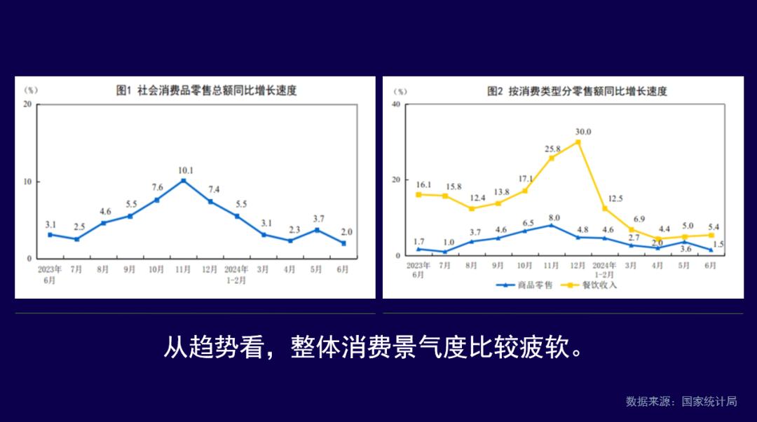 这是国家统计局的数据,2024年上半年同步增长3.7%,6月同比增长2.0%,但环比-0.12%有微降,年内首次负增长。三年复合增速2.7%,低于预期。