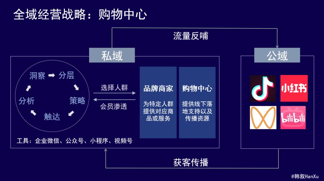 解决这些问题的工具,我把它叫做全域经营战略,下图就是在购物中心场景里的应用。