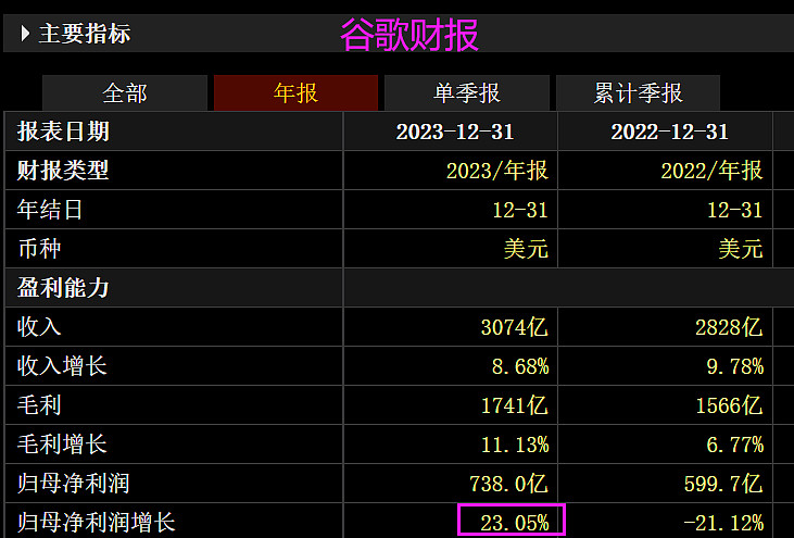 微软、谷歌、亚马逊等科技巨头2023年归母净利润摆脱了2022年的负增长,同比增长纷纷超过20%,亚马逊更是暴增12倍。业绩大反转,带来行情的反转。