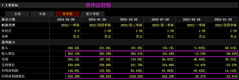 自2023年二季度开始,英伟达营收开始翻倍增长,净利润连续四个季度数倍暴增,相当炸裂。