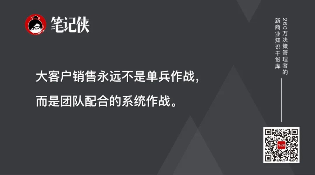 我们要明白,大客户销售永远不是单兵作战,而是团队配合的系统作战。