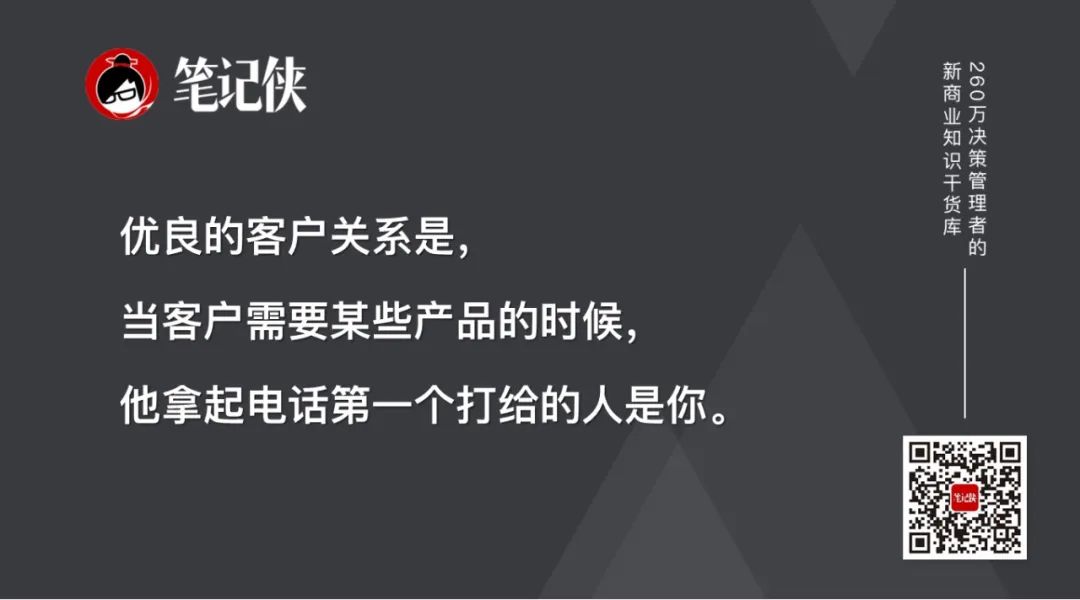 优良的客户关系是当客户需要某些产品的时候,他拿起电话第一个打给是你,而不是打给你的对手。