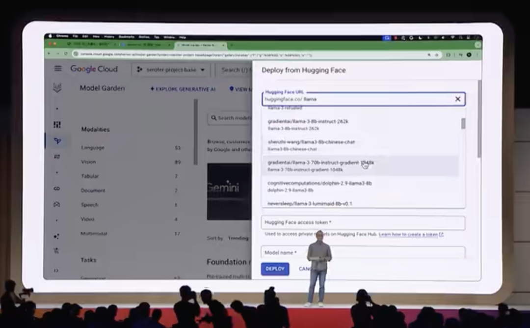 在 Google Cloud 上,不但可以使用 Gemini 的模型,也可以一键部署来自 Hugging Face 的开源模型。