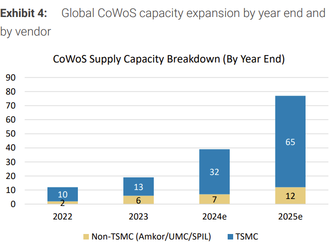 京元电子也确认其主要AI GPU客户英伟达已要求扩充新测试产能,进一步确认芯片产量不会在今年第四季度有较大变化。来自京元电子的产能利用率数据与我们对台积电的CoWoS-L(一种先进封装技术)产能的估计相似,第四季度产能约为10kwpm。
