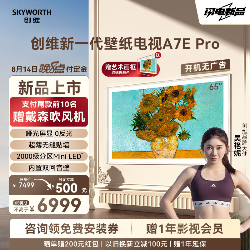 IT之家 8 月 14 日消息,维新一代壁纸电视 A7E Pro 今天正式开售,可选 65/75/85 英寸,主打“Mini LED 类纸屏”,吴艳妮代言,定价 6999 元起(晒单赠送 200 元红包),IT之家汇总如下: