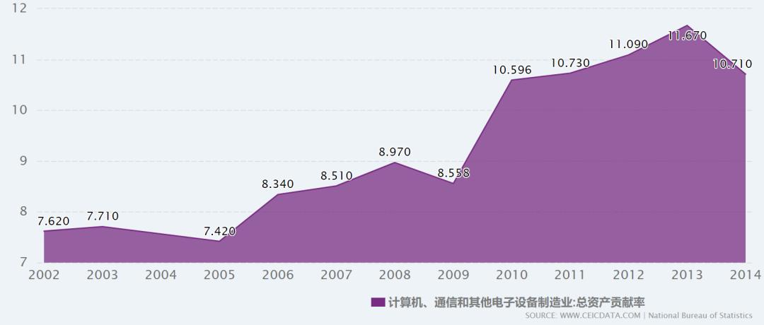 中国计算机、通信和其他电子设备制造业:总资产贡献率 数据来源:国家统计局