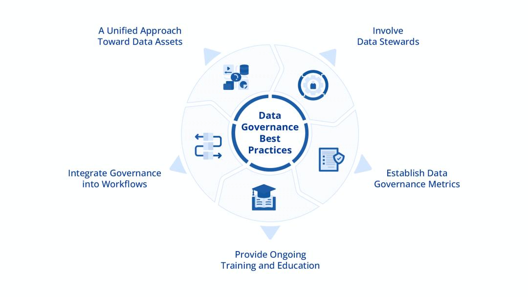 数据治理计划通过建立一个框架来运作,该框架包括旨在确保有效管理组织数据资产的各种流程、政策和实践,包括: