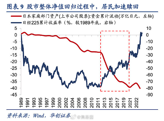 😮2012年日本股市触底回升,但居民反而加速离场,家庭部门所持上市公司股票资金流出曲线比此前的‘失落的20年’更为陡峭,反映出居民对股市的信心严重不足。