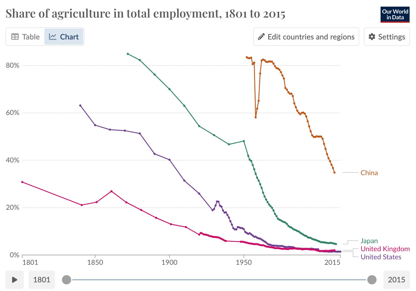 I’m rather glad to be a technologically unemployed charcoal burner. So, if history is our guide, even if we automate another 90% of current jobs, we will eventually find more and better jobs somewhere else. In novel tasks that we can’t even imagine yet.