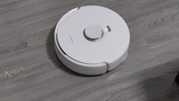 切换到扫地场景,云鲸 J5 在遇到地面颗粒物的时候,会自己识别地面固体垃圾的颗粒大小及脏污程度,智能调整清洁行为。比如在感知到地面颗粒物较多时,J5 会主动减速、增大吸力,同时停下边刷减少打飞颗粒物,必要时还会回头复扫,确保地面垃圾都被清理干净。