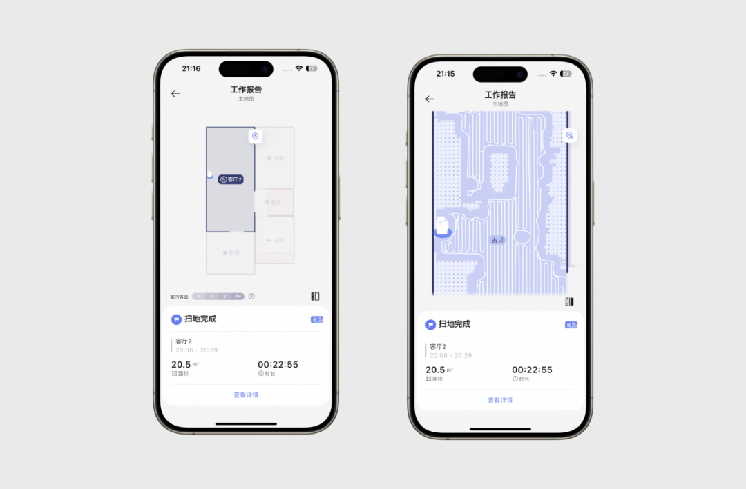 对于一个懒人来讲,从肉眼可见的清洁,到数据层面的体现,这种变化比起传统打扫时的主观判断,将决策结果展示给你同时辅以实际清洁效果,显然让人更加安心。