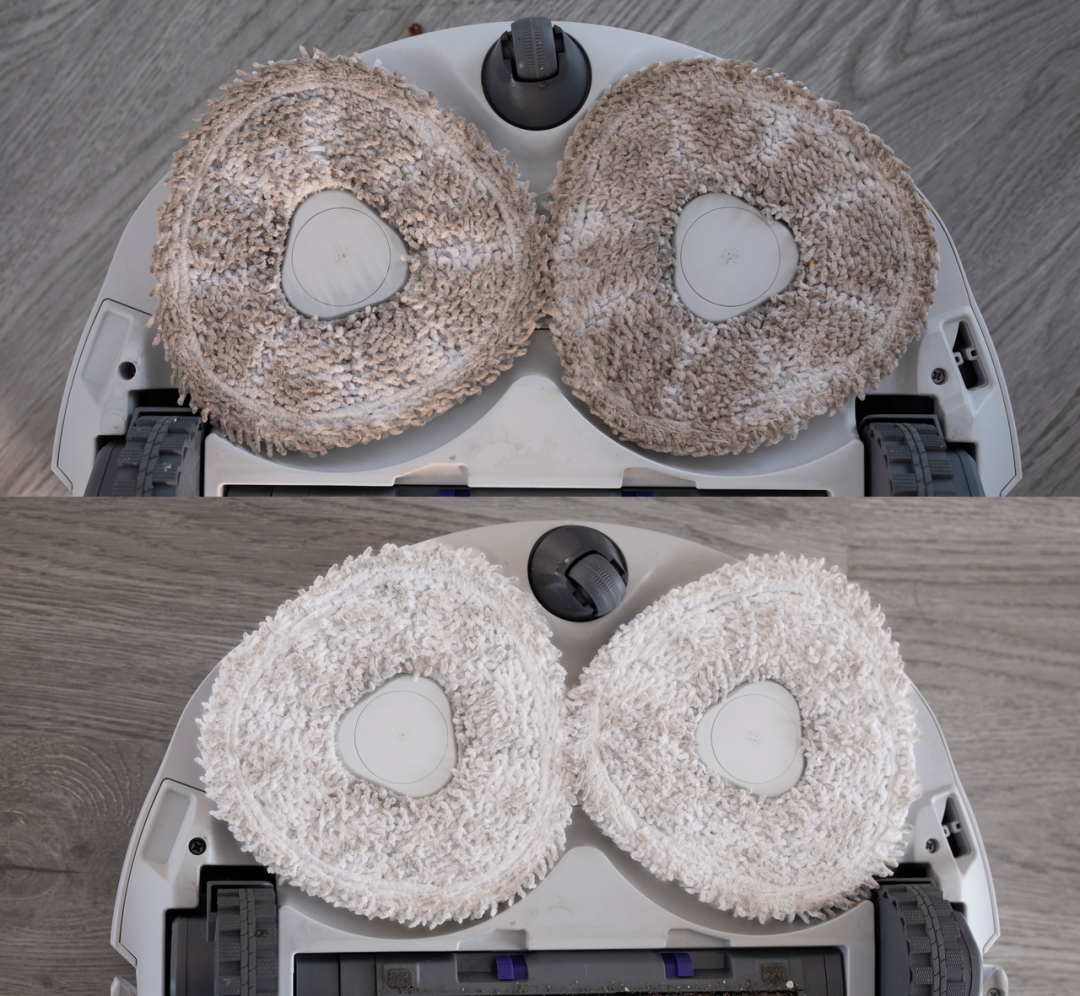 在多次使用后的云鲸 J5 单次热水动态拖布清洁效果对比