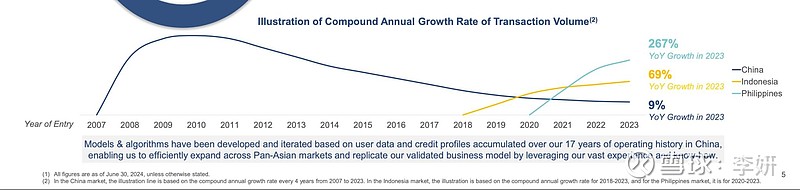 和国内情况类似,信也的海外业务特点,同样以小额、短期、高频为主要特征。根据2023年年报,信也科技的海外借款还款周期为1-12个月不等,成本主要包含本金、利息、借款促成服务费等。根据信也二季度业绩会信息,随着印尼业务的快速增长和稳健的风险水平,AdaKami已经与当地7家金融机构建立合作关系,资金来源已基本全部由机构资金提供。在菲律宾,JuanHand也陆续与三家头部金融机构Seabank、Union Bank和Maya Bank建立合作关系。