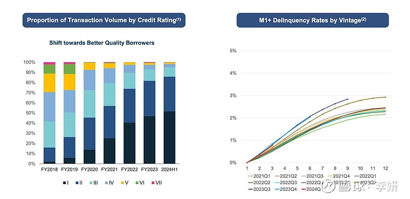 随着东南亚互金市场不断发展,当地监管和规范在逐渐完善的过程中。例如,印尼监管机构自2024年1月1日起金融科技贷款机构利率上限从日利率0.4%,降低到0.3%。根据业绩会信息,凭借在中国市场积累的运营经验,信也仅用5个月完成了针对定价调整而进行的人群、模型以及风险的优化,客群上浮后风险较去年末优化28%,抵消了定价调整对盈利的影响, take rate也恢复到定价调整前10%左右的水平,业务进入稳定期,并预期在三季度成交量环比超10%、创历史新高。