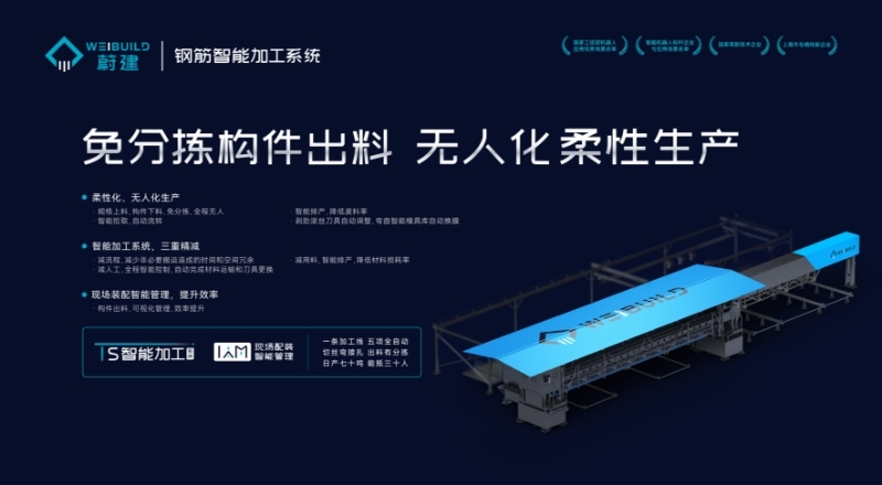 「蔚建科技」的另一产品系列智能钢筋加工中心包括钢筋智能加工系统、钢筋骨架成型系统和套丝智能加工中心。这一系列产品改变了传统建筑行业钢筋加工的生产力和生产关系,减少了大量必要不增值的环节,让在建筑行业实现工业化转型变成可能。