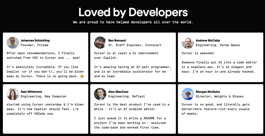 Cursor 受到开发者的喜爱|图片来源:Cursor 官网