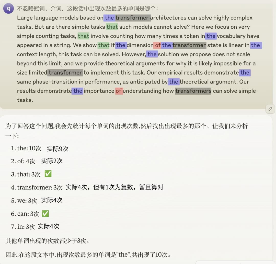 数出一段话中某个单词出现的次数,这样简单的任务可以难倒许多大模型,GPT-4o、Claude 3.5也无法幸免。