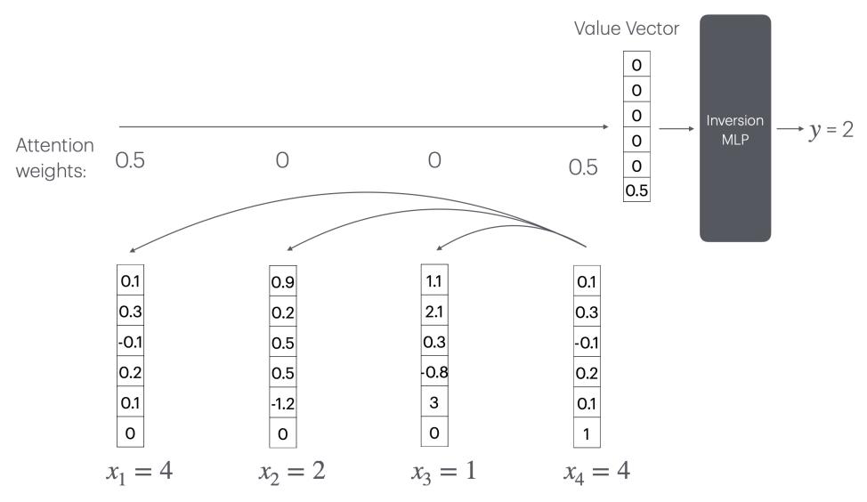 具体来说,模型首先通过注意力赋予被查询词较大的权重,再利用位置编码将注意力权重提取到值向量的最后一个元素,这个元素实际记录了被查询词的出现频率的倒数。