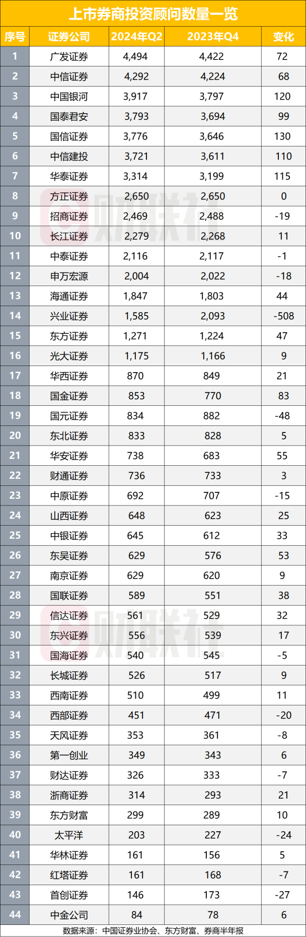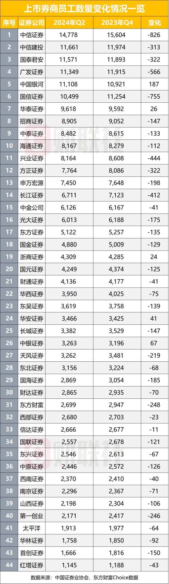 头部券商人员变化幅度最明显