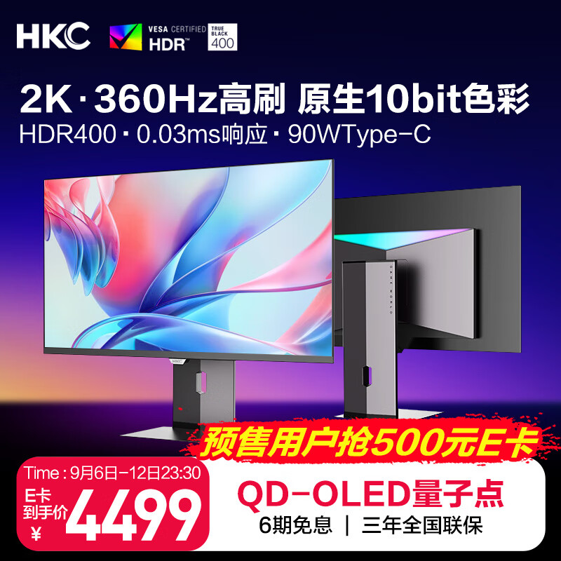 HKC GS27QE:2K 360Hz,首发 4499 元