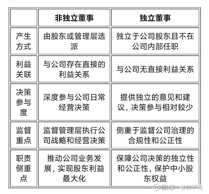 首先大家要明白非独立董事和独立董事是如何产生的,以及在公司治理中的职责是什么。