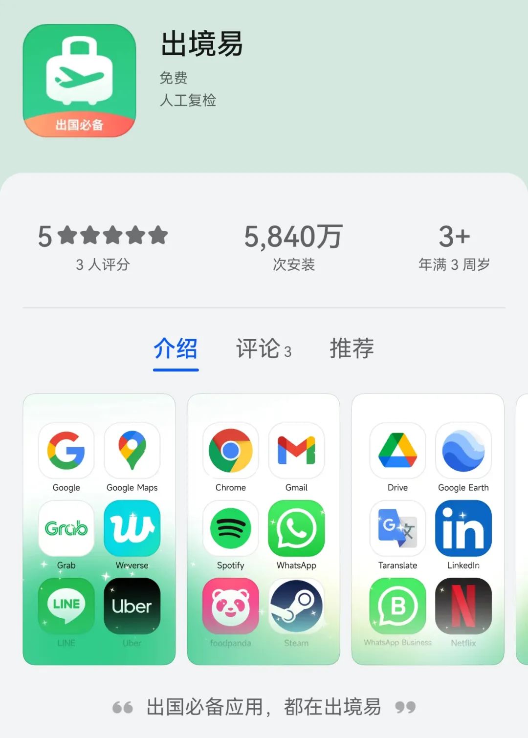 除了 Micro G 以外,华为手机还有很多渠道可以用上谷歌全家桶,比较常见的有 “ 出境易 ” 。它的实现方式跟 Micro G 又不太一样,你只能在出境易这个软件里面安装谷歌软件,并不能直接装在手机上。