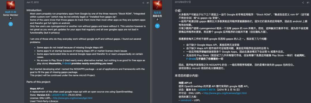 这老哥又不想向谷歌低头,于是他连同一帮自由应用开发者,把这些服务框架全都给反编译了,免费开源给跟他一样不想用谷歌的开发者和用户。