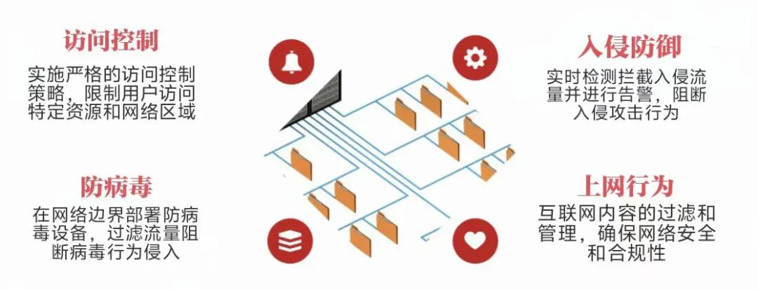 4.合规性保障:随着网络安全法规的不断完善,化工园区需要遵守相关的网络安全标准和规定。通过实施网络和安全建设,可以确保化工园区网络系统符合相关法规要求,避免因违规操作而引发的法律风险和经济损失,我司网络安全建设方案满足等保三级的要求。