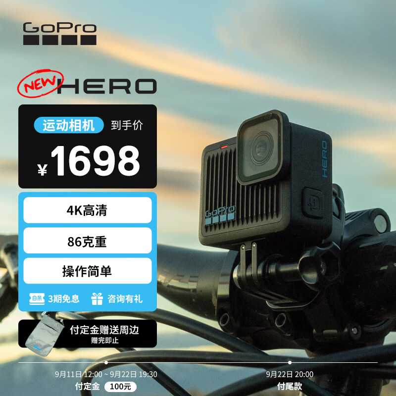 IT之家 9 月 13 日消息,GoPro 在 9 月 4 日推出了一款定位入门级的“全新 GoPro HERO”运动相机,这款运动相机重量仅为 86 克(包含安装接头),同时具备 5 米防水功能,国行售价 1698 元,目前已在京东开启预售,将于 9 月 22 日晚上 8 点现货开售。