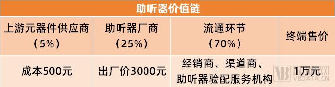 值得一提的是,助听器不只是产品定价高,其流通环节的服务成本也较高。具体来说,一款助听器,若产品出厂价约为3000元,终端售价将达1万元。其中70%的成本都卡在了流通环节。