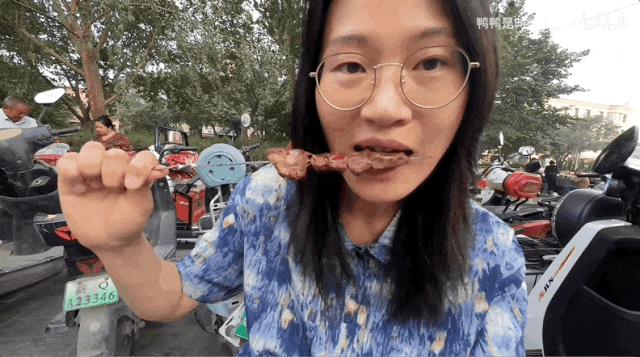 白天刚炫完水果,天一擦黑,烧烤摊又陆续出没。鸭鸭点了四串大肉串,只花了9块钱,物价仿佛穿越回九十年代。
