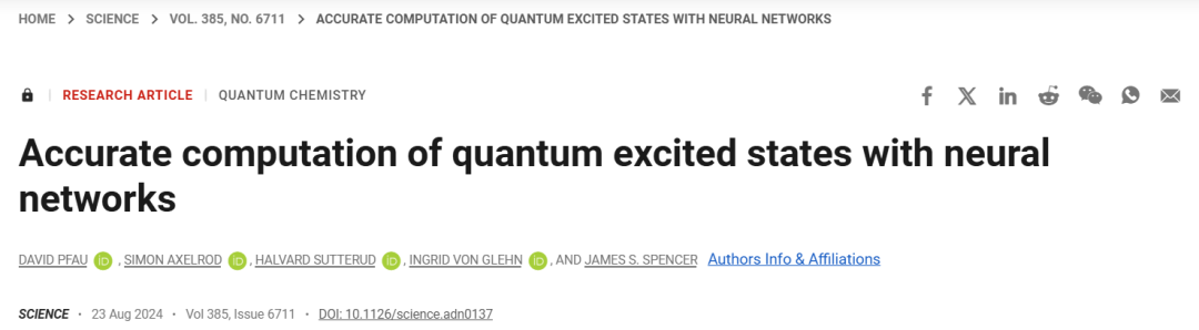 Pfau D, Axelrod S, Sutterud H, et al. Accurate computation of quantum excited states with neural networks[J]. Science, 2024, 385(6711): eadn0137.